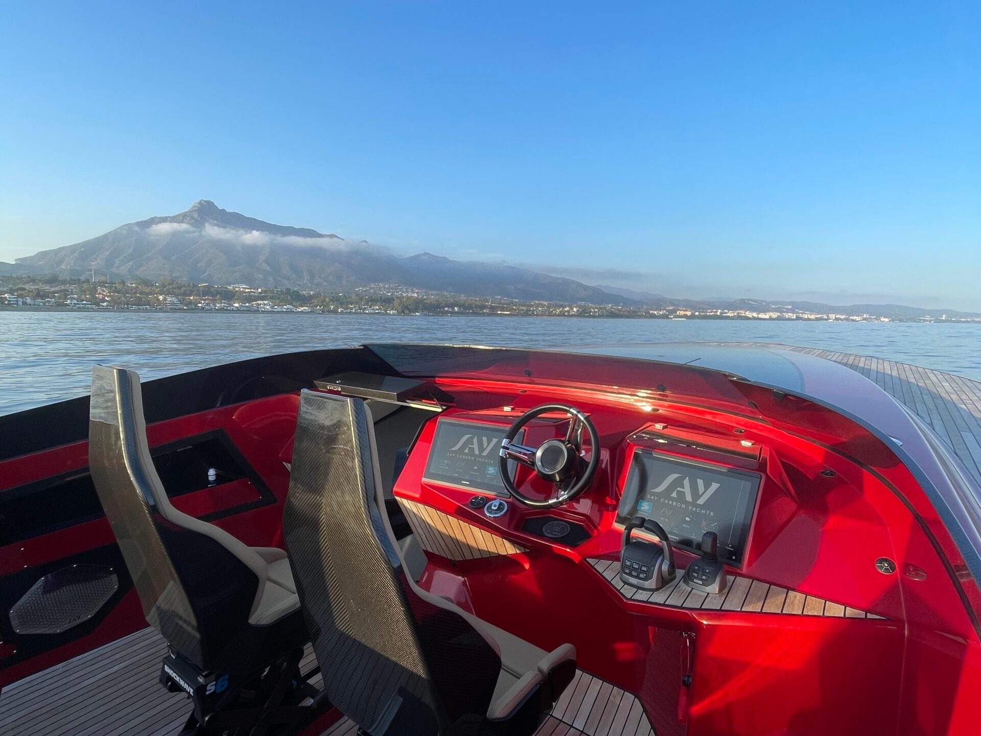 Our red carbon fiber yacht has ultra-low-emissions and high speed performance up to 45 knot. This yacht is a statement of elegance, luxury, and sustainability.